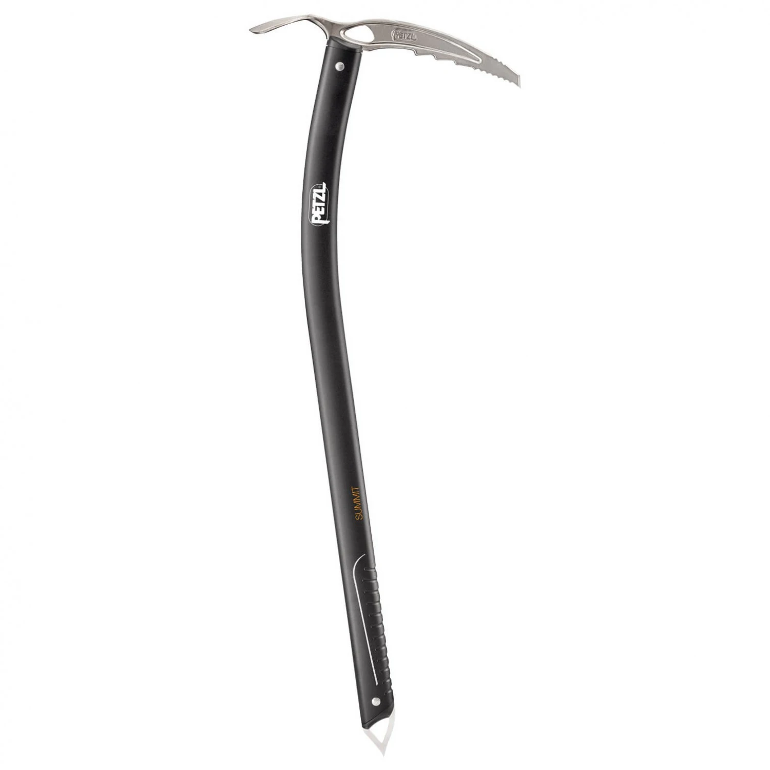 La lame pointue en acier trempé est exceptionnellement solide et assure un ancrage précis dans la neige et la glace. La partie centrale relativement large de la lame garantit une bonne tenue dans la neige molle. La panne permet de tailler des marches et de creuser des corps-morts en toute simplicité et assure un large support confortable pour la main. Des dents supplémentaires en haut de la lame garantissent une meilleure prise pour un usage comme piolet-rampe. Bien entendu, un ‘illet pour mousqueton est indispensable. Le Summit de Petzl s’impose par son poids léger et son très bon rapport qualité / prix !